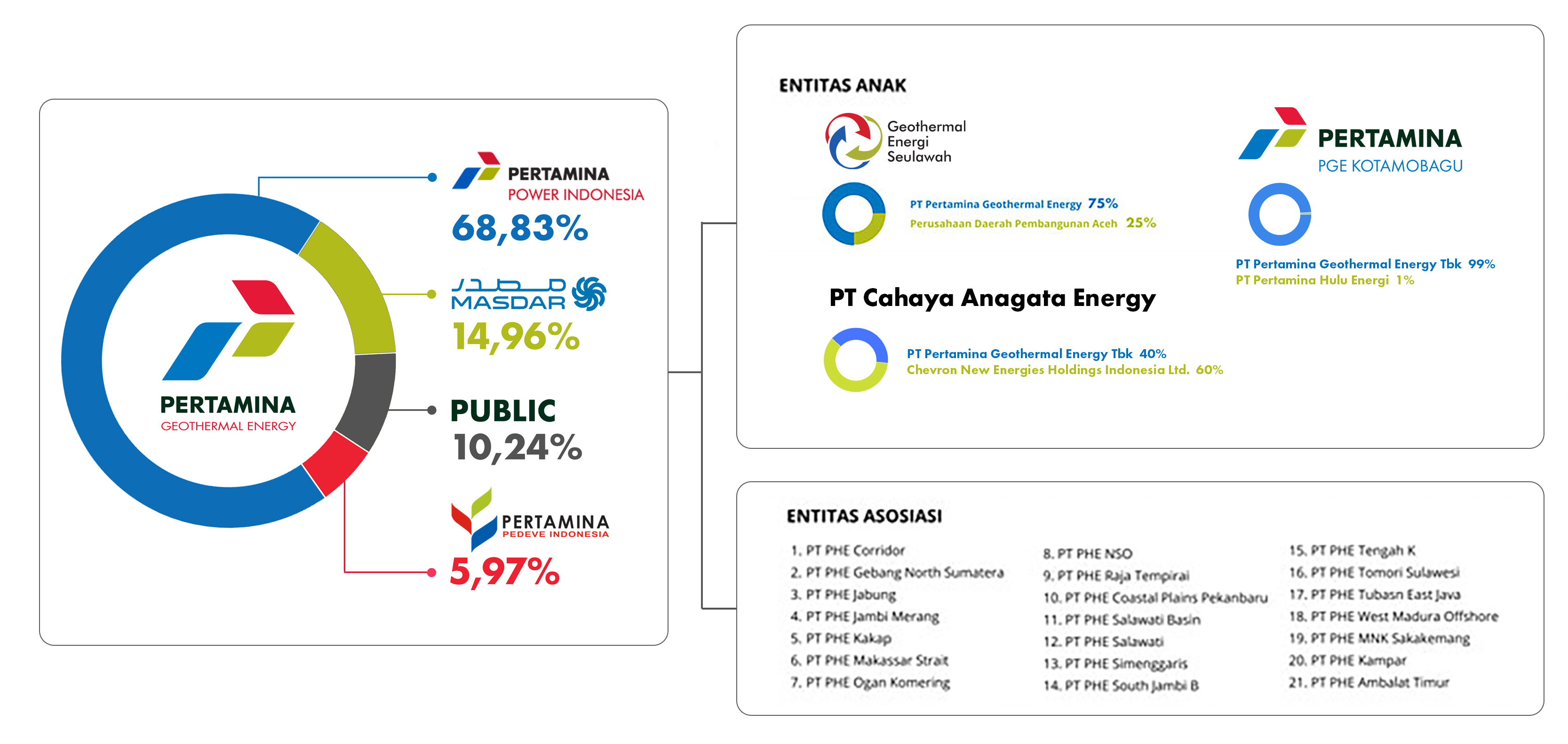 PT Pertamina Geothermal Energy is a subsidiary of PT Pertamina Power Indonesia, which synergizes with other entities under PT Pertamina (Persero). For the purpose of sustainable development of geothermal industry, PT Pertamina Geothermal Energy established PT Geothermal Energi Seulawah on 31 July 2017.