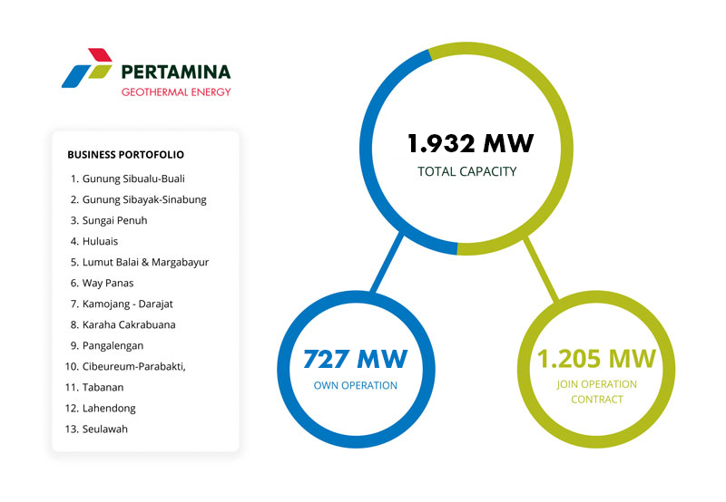 Kami mengoperasikan aset kami di berbagai wilayah di Indonesia dengan mengedepankan fokus tak tergoyahkan pada keunggulan operasional untuk mengoptimalkan manfaat bagi karyawan, pelanggan dan masyarakat. Saat ini PGE mengelola 13 Wilayah Kerja Panas Bumi (WKP) dan 1 penugasan dengan total kapasitas terpasang sebesar 1932 MW.